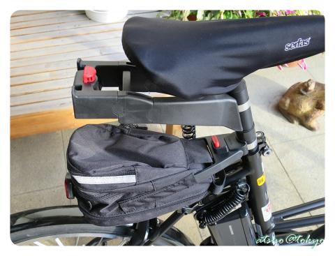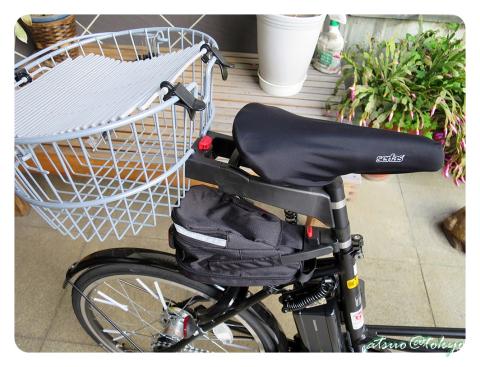微妙にかごの端がシートポストバッグにぶつかっています。あと 1cm長ければぶつからないんですけどねぇ。