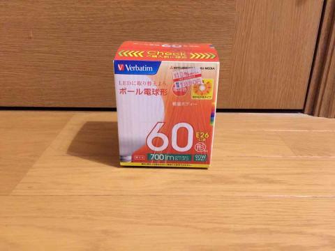 三菱化学のボール型LED電球。60W型で消費電力9W、光量は700㏐。電球色です。