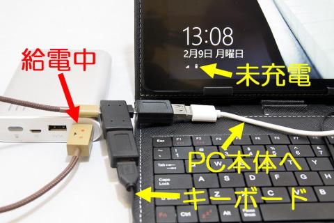 上図ではキーボードは使えていますが充電は出来ず、結局私の環境ではダメでした....