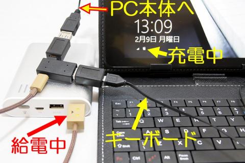 あくまで接続した周辺機器だけ充電が出来、タブレット本体への充電は出来ないというモノでした(機器によっては出来る事もあるらしい)。