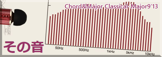 「最も音源に近い音を忠実に伝えるイヤホンを開発」という割には、「私達が研究しているのはイヤホンだけではなく、「音楽」である。」と、やや「手心」を感じるブランドポリシーを持つChord&Major。実際、そのHPの各機種の周波数特性を見てもいわゆる「フラット」とは程遠いもので、おそらく彼らがやりたいのは「最も『聴く人がそのジャンルにおいて想起する』音源に近い音を忠実に伝えるイヤホンを開発」ということなんだと思う。「クラシック」とはこんな広い音場、「ジャズ」はこういう湿度感、「ロック」はこういうエネルギーというように、音楽ジャンルによって「聴く人が期待する音」というのは微妙に異なる。ものすごく周波数特性が良くて上から下まできちんと出ているイヤホンでも、硬い音であればやや古めのジャズコンポを聴くには疲れるだろうし、中域に圧倒的な甘い艶と説得力があってもデジタルビートなハイスピードチューンがオイシイかどうかはまた別。