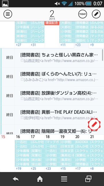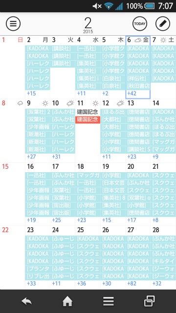 毎日発売されるコミックや自分の予定をカレンダーで確認しています。
