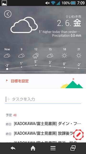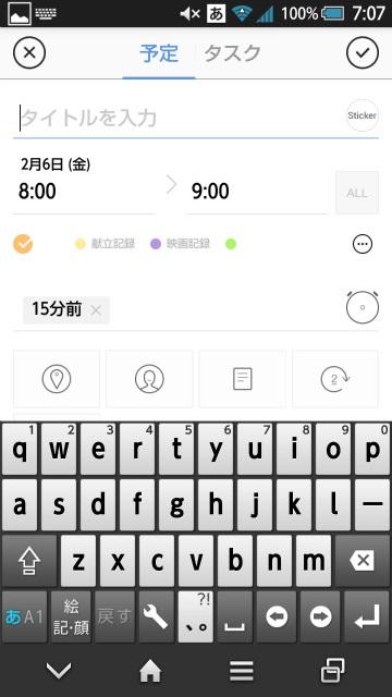 赤の丸えんぴつアイコンをタップすると予定をつける画面になります。