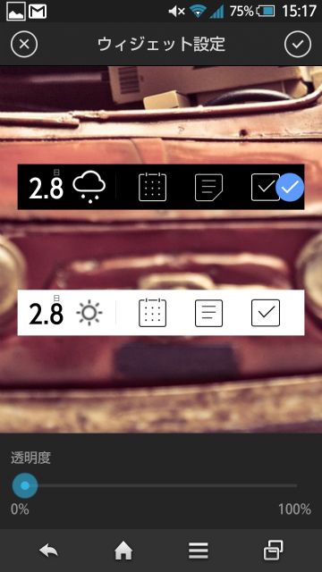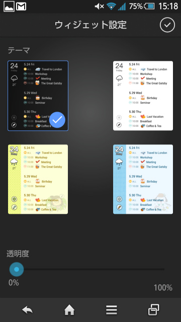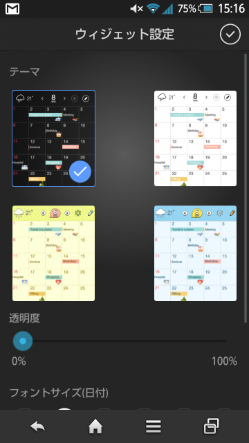 ウィジェットも16種類あります。透明度も調節できるのでシンプルな表示にすることもできます。月間、週間、リスト表示などなど。