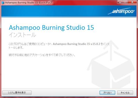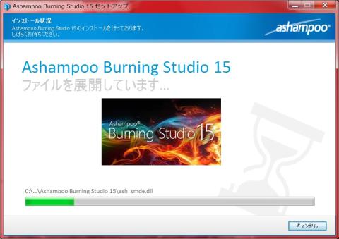 ashampoo_burning_studio_15_15.0.2_18663.exeをクリックすればインストールが始まります。