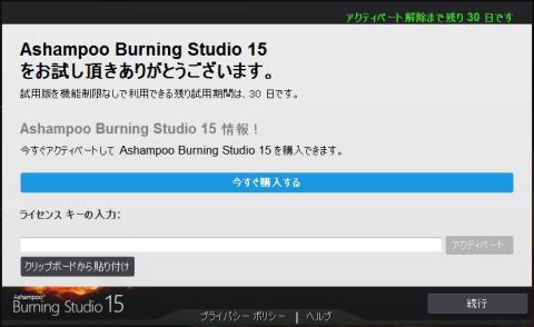 無いので、そのまま「続行」をクリックすれば「30日間の体験版」となります。