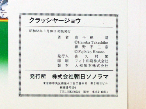 1983年の劇場版「クラッシャージョウ」の公開に合わせて?本単行本化が発売されました。