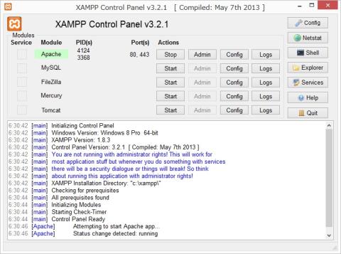 「XAMPP Control Panel」で各プロセスを起動出来るのが便利。
