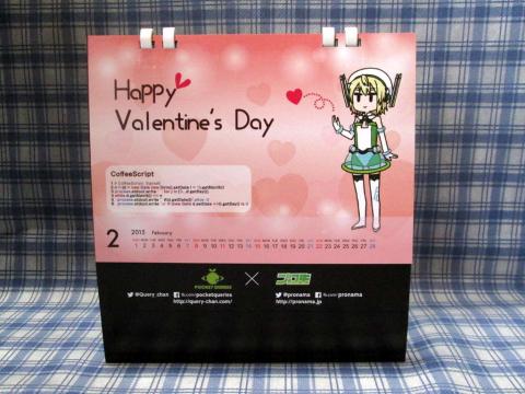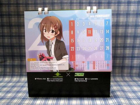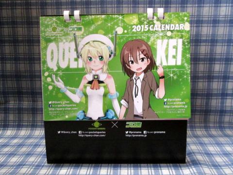 リリースタイミングが 2月にずれ込んだので、2015年2月開始、2016年1月終了の月めくりカレンダーで、プロ生ちゃんとクエリちゃんのリバーシブルになっています。