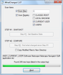 WhatChanged is a system utility that scans for modified files and registry entries. It is useful for checking program installations. There are two steps for using WhatChanged:
