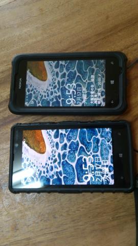 ディティールのわかりにくい写真ですみません……裏面・表面ともフラットな形態で、520の4インチに対しこちらは4.3インチ。でも、画素数はどちらも480×800です。