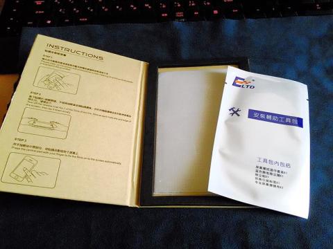 パッケージを開くとブックレットの扉裏に貼り方の簡単なイラスト入りの説明書き。付属品はなにやら「安裝輔助工具包」と記されています。