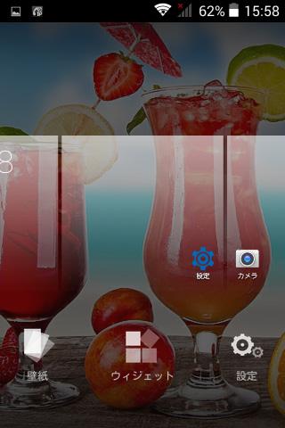 ホーム画面で「メニューボタン」をタッチすると、「仮想ページ」「壁紙」「ウィジェット」「設定」にアクセスできます。