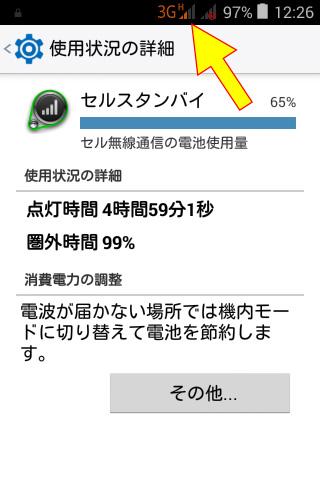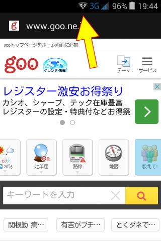 今までアンテナマークに”x”印が表示されていたのが、アンテナの左隣に”3G”の文字が表示されました。