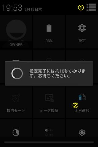 SIMを切り換えるにはステータスバーから表示させるスライドメニューに「SIM切替アイコン」があるのでタップする事で相互に切り替わります。