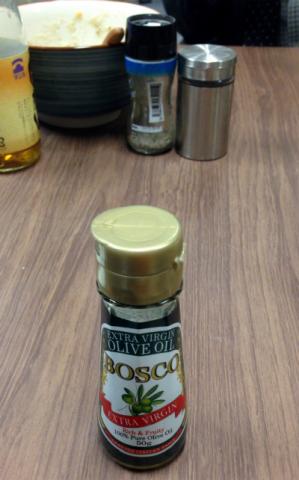 とても小さな瓶に入った、「BOSCO エキストラバージンオリーブオイル 50g瓶 」です。エキストラバージンですから、ドレッシングに使います。「炒め物」に使うヤツではありません。