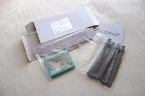 開いたら適当に交換。バッテリーは両面テープでくっついてた。 (基盤を外すにはトルクスT6が必要。T5でも回ります。)