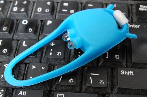 形は深海生物を彷彿させますが、ゴム部を折り返してハンドルに巻いて取り付けます、雨蛙のようです