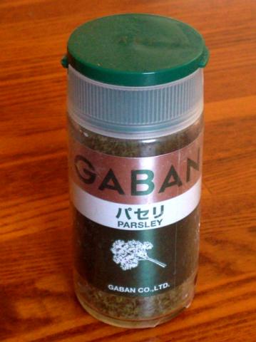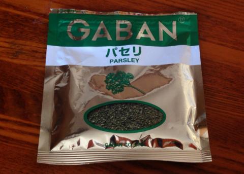 GABANの「袋入りのパセリ」です。「瓶入りの中身」が無くなったので、詰め替えました。誰かが、すでに少し使っているみたいです…。