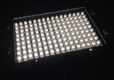 光らせたところ、カメラの自動補正でこんな感じ。相当に明るく直視できません。