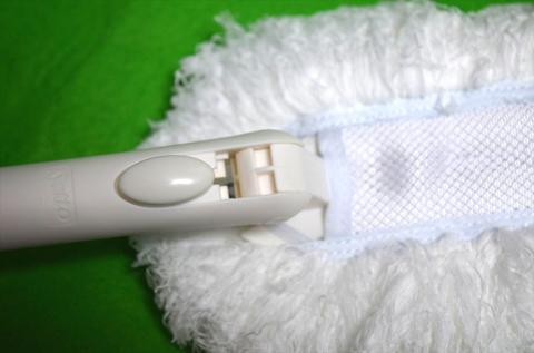 取っ手部分にロックボタンが付いていて2段階に角度を調整できます また本体とモップ部が分離できますので清掃も可能ですね モップ部はオイルとかクリーニング液などは付いていないようです 繊維が細いので絡めて埃を取るようです。