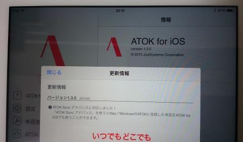 version1.3から、ATOK Syncに対応したので、