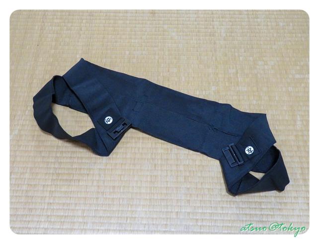 本体の真ん中辺りを腰に当て、右・左を確認しつつ輪っかの部分を膝に引っ掛けバックルを留めれば装着完了です。