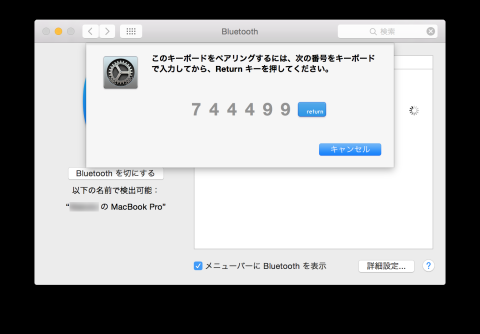 6ケタ数字のパスコード入力を求められます。本キーボード最上段の数字キーで入力後、エンターで確定すると、