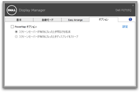 「オプション」ではスクリーンセーバーが有効になった時に減光したり、モニタをスリープさせることができます。