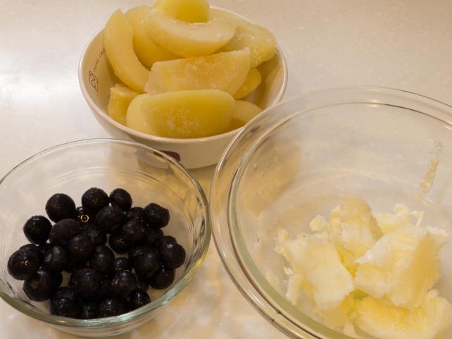 今回は、ブルーベリーとモモのフローズンヨーグルトを作ります。