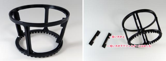 右がジュースアタッチメントのフィルターを装着した状態になります。
