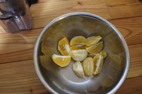 伊予柑3個の皮をむいで絞ってみます。