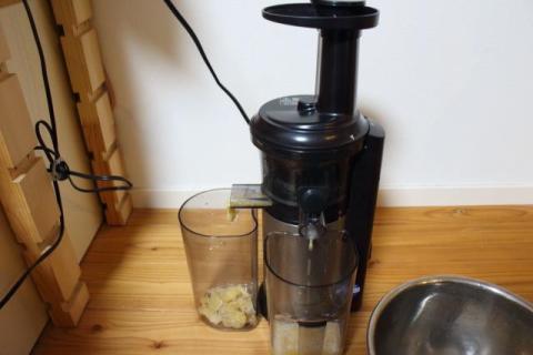 低速でゆっくり圧をかけて搾り出すので、ビタミンとかの栄養素が壊れず多くの栄養を搾り出せるんだそうです。