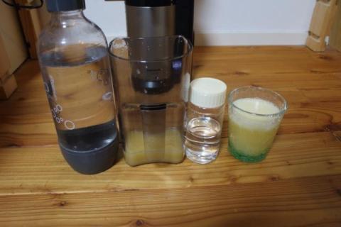 そしてレモン果汁に、焼酎、一番右はそれらをすべて混ぜ合わせたなんちゃってレモンサワーです。