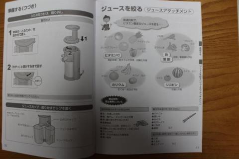 まずは説明書を見て搾れないものとかがないか確認しておきます。