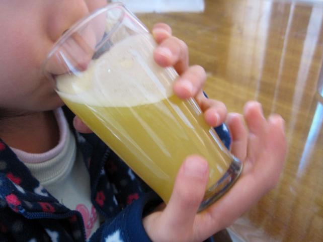 娘にのませてみると、「おいしい!でもつぶつぶが嫌~」とのこと。