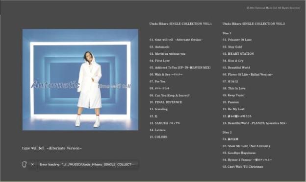 活動中に、都合オリジナルアルバム5枚(海外活動時の「Utada」名義除く)、シングル21枚(同、配信除く)を残した彼女だが、それらを纏めたベスト盤として“Utada Hikaru SINGLE COLLECTION VOL.1”と“同VOL.2”を活動中にリリースしている。