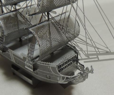 そのため、船体の前後、帆桁やマスト周りの難易度が鬼畜レベルに達しており、作り慣れていても結構な苦戦を伴う。