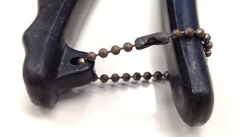 しかし、このハンドリベッターと専用のブラインドリベットを使うと、片側から差し込んでギュッとするだけで簡単にリベット止めができる優れものです。
