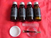 金属のものが「スパチュラ」でいわゆるヘラです。No1に直接付けたり、No3&No4などを容器に入れて混ぜたり、生地に当てて動かす事で液体を浸透させます。
