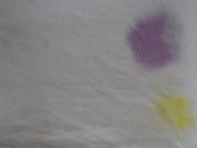 麻。12時間経過後、シミ抜き後は1分放置して水で濯ぐのを1回。