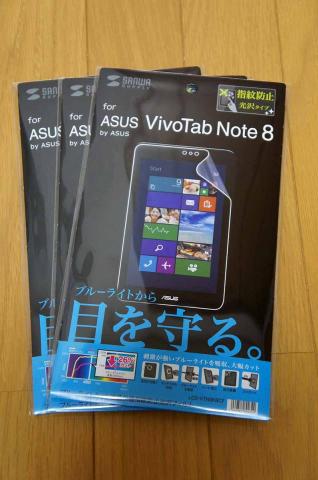 ASUSのVivoTab Note 8用のフィルムで、指紋防止の光沢ありです。ブルーライトカットの機能もあります。