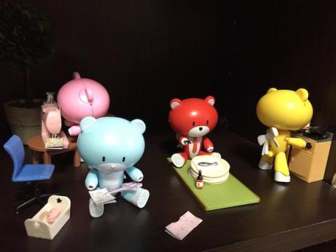 ということで、みんなでつくったプチッガイが本棚に並んでおります (;´Д`)