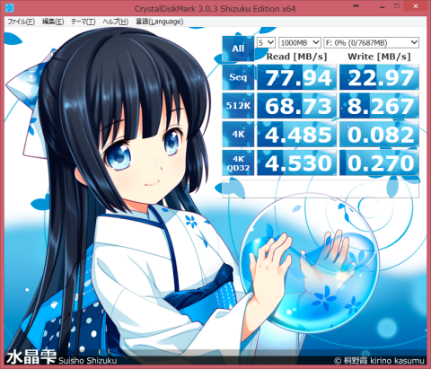 手持ちのメモリーカードで、いくつかCrystalDiskMarkを回してみました。