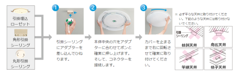 取り付けは丸型引掛シーリングとなっていましたのでカンタンに取り付けできました。