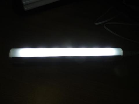 上位製品では光源が点として見えず、蛍光灯にそっくりなものがありますが、こちらは、お安い代わりに、光源が一個ずつ主張するタイプとなります。