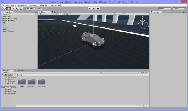 インストーラで Example Project を入れたので、起動画面にある「Standard Assets Example Project」をクリックするとサンプルが出てきます。