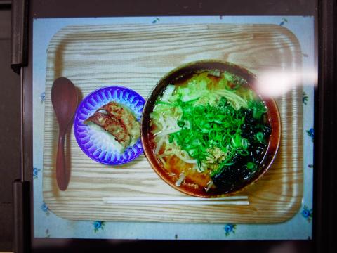 これは、餃子と、ラーメン。の、写真が映ってるスマホの画面を