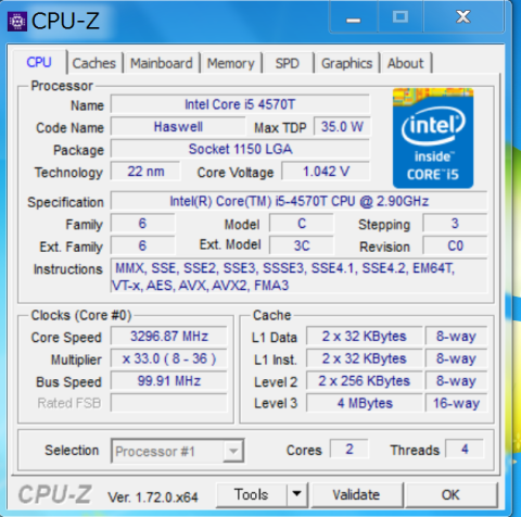 CPUはIntel Core i5-4570T( 2Core 4Threads )