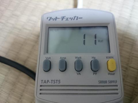 最後に昔に買ったワットチェッカーを引っ張りだしての消費電力測定です。